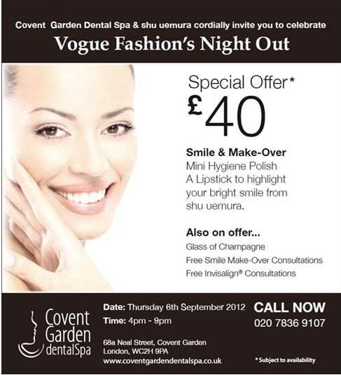 Covent Garden Dental Spa have teamed up with our neighbour, shu uemura to host Vogue Fashion’s Night Out this Thursday 06 September 2012.